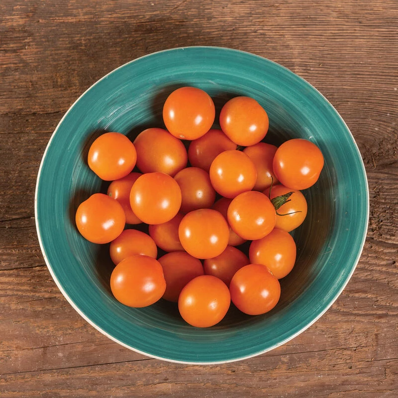 Exceptional snacker with rich, balanced flavor, a meaty bite, and resistance to the splitting and cracking common to many similar market varieties. With a vigorous indeterminate plant selected for low-input systems under heavy disease pressure, Citrine produces reliable crops in harsh conditions. Beautiful orange color and ideal cherry size (20 gm.) make it a great match for Cherry Bomb. Our thanks to NCSU for working with us to develop this variety. USDA Certified Organic.