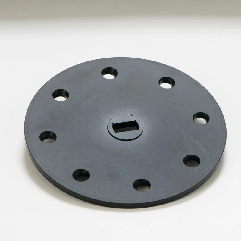 8 round holes, 5/16″ (8mm) diam. Possible spacings (depending on seeder sprocket combination) from 4-10″ apart. Seed plates have holes for seeds to pass through, allowing accurate singulation of larger seeds. Made of a special anti-abrasion plastic to prevent build-up of static electricity.