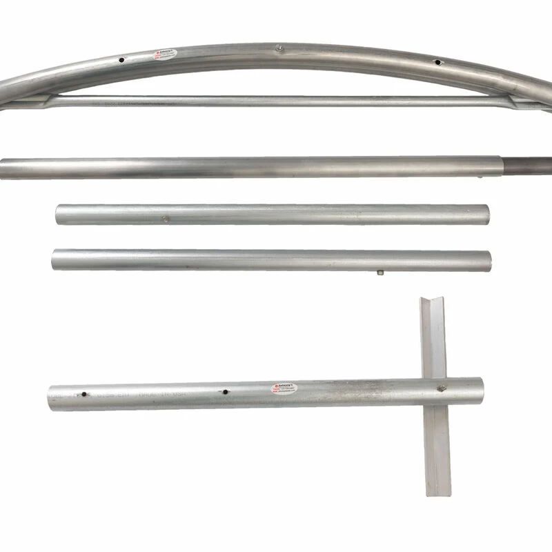 Create 14′-wide, fixed or moveable, peaked structures with bows made from 2½ pieces of chain-link fence top rail. Includes extensive instructions for building a fixed tunnel with traditional style coverings as well as a set written for Eliot Coleman’s modular moveable “cathedral” tunnel that can be broken down into modules and seasonally moved anywhere on your farm. These 14′ wide structures are designed to cover four 30″ beds and will also allow two rows of 6′ Quick Hoops™ low tunnels to be erected within them for added protection over the winter. Includes separate jigs for the side hoops and peak section, plus mounting hardware.