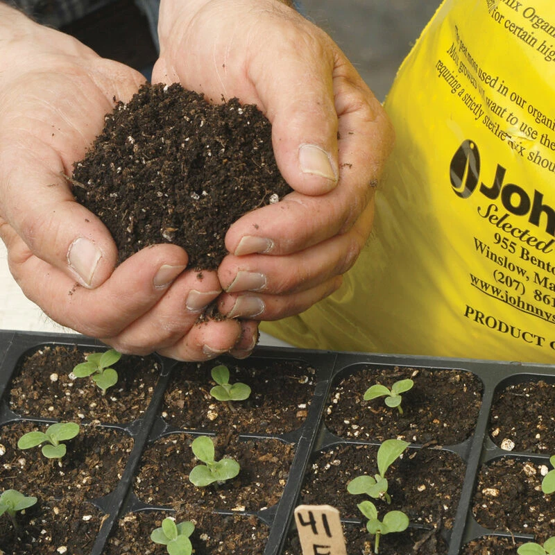 A custom mix of humus (black) peat moss, sphagnum peat moss, compost (composted poultry manure and by-product, hardwood shavings/sawdust, elemental sulfur; crop residue, and/or seaweed), horticultural perlite, fish meal, and seaweed meal. A great option for growing seedlings in cell trays and soil blocks with ample nutrients to carry most plants from seeding to transplant. Approved by MOFGA for use on MOFGA certified-organic farms. Available in three sizes.