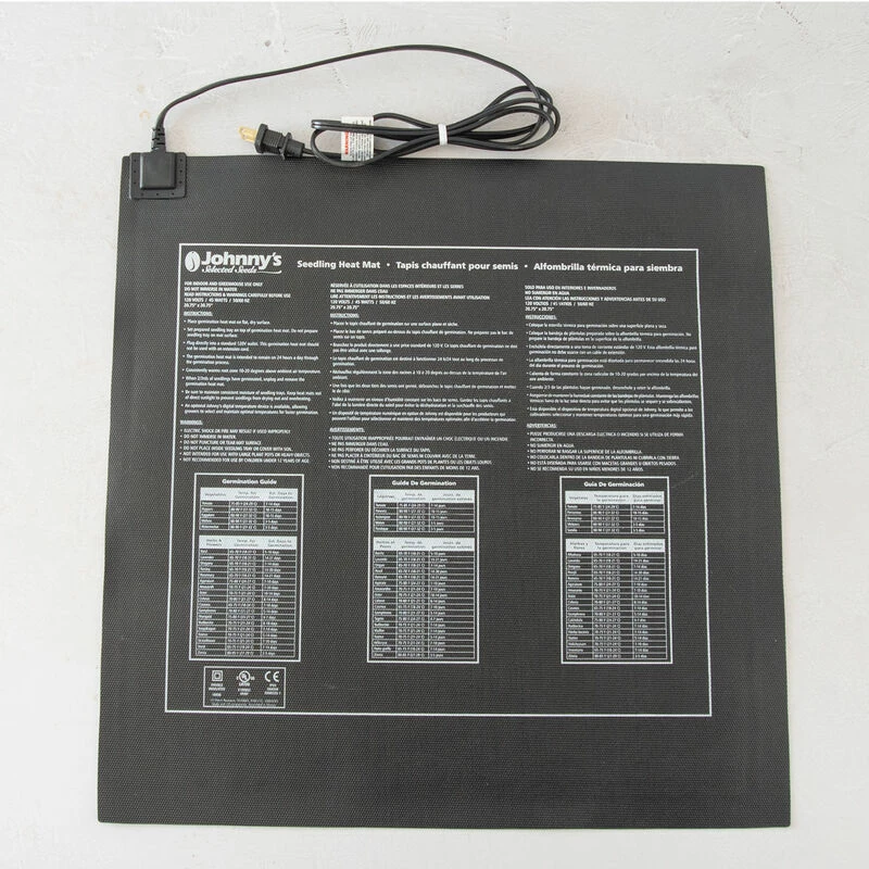 A key component to propagating seedlings like tomatoes, peppers, melons, and other crops that require soil temperatures of more than 70 degrees for the seeds to germinate. These commercial-grade heat mats are ideal for seed germination and plant propagation. Double-insulated, durable construction with patented waterproof seal around the edges to protect mats from damage. Sized to hold 2 standard 1020 seedling trays. Includes Johnny’s quick guide to germination for various crops, based on findings from our Research Farm. UL Certified for safety. 120 volts. 45 watts. 50/60 Hz. Includes 6′ power cord with 2-prong plug. Dimensions: 20.75″ x 20.75″. NOTE: Designed to raise the soil temperature in the root zone 10 to 20 degrees above ambient air temperature.