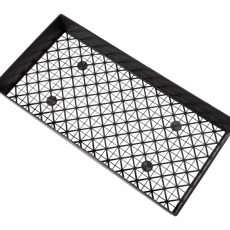 Used with six-pack jumbo plug flats, square plastic pots, biodegradable pots, and other traditional inserts to create compact, efficient growing systems for bedding plants, pack sales, herbs, seedlings, and vegetable transplants. Medium weight injection-molded polypropylene construction with a wide uniform bottom mesh, reinforced at the sides and ends, and solid side walls. Offers extra strength to support inserts uniformly without sagging in the middle for uniform watering. Compatibility: Use with Pro-Trays, Jumbo Plug Flats, and Mini Square Plastic Pots. Dimensions: 10 1/2″ x 20 7/8″. Black.