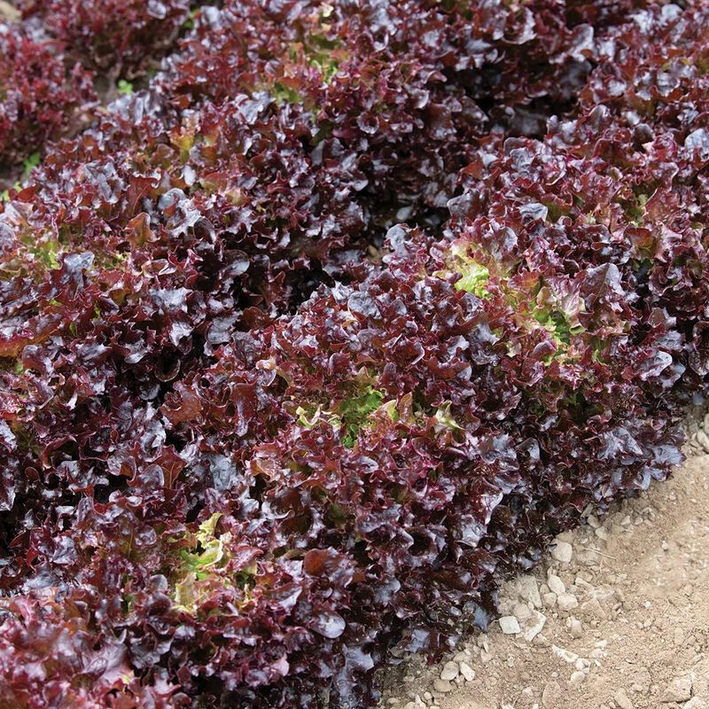 Lofty, tango type leaflets with an impressive dark red color. Softer texture with a crisp midrib reminiscent of a red leaf lettuce. Deep incising and thin petioles for uniform harvest with minimal cut surface area. A little slower to mature than other red one-cuts, but with that comes slower bolting and less bitterness than any other red one-cuts in our trials. Superior summer performance. Showing promise in unheated, winter high tunnel trials. Great for multiple cuts and both hand and mechanical harvest. MT0-30. Pelleted seed.