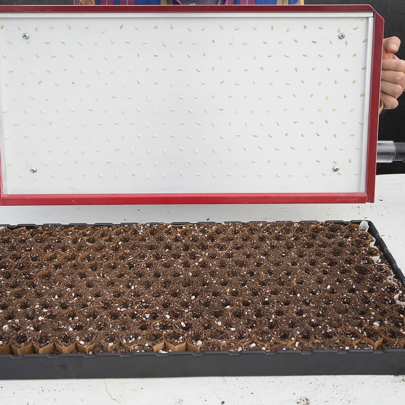 For use with the Precision Vacuum Seeder for Paperpot Trays only. 264 large plain holes (not countersunk). Made of precision-machined aluminum. Made in the USA. Crop recommendations from our trials: