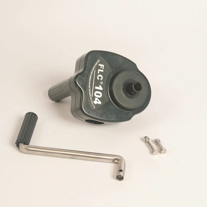 Mounts onto a 3/4″ EMT vertical guide post for easily lifting and lowering roll-up sides on your tunnel. Built-in automatic brake holds sidewall at the desired height for better tunnel ventilation. Durable, weatherproof construction and stainless-steel handle will last for years. The drive shaft fits neatly inside 3/4″ EMT pipe for neatly winding up greenhouse plastic. 4:1 gear ratio. Maximum sidewall length: 300′. EMT pipe not included.