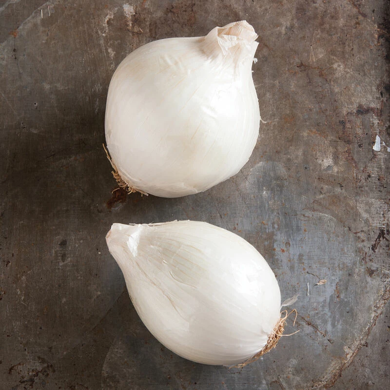 Jumbo, globe-shaped bulbs with bright white skins when cured properly. To maintain white color, cure in the field as briefly as possible or cure in a dark, warm, and dry area. Mild to moderate pungency. For short to medium storage (3-4 months). Adaptation: 30-38° latitude.