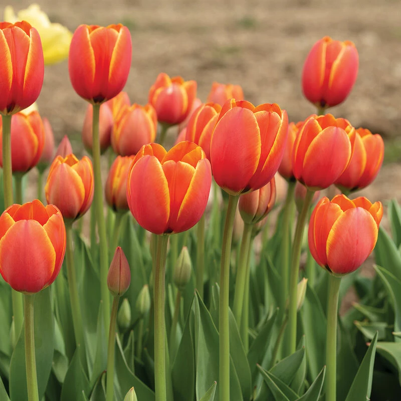2 1/2–3″ tall blooms are orange-red with a thin edging of gold. Blooms hold their cup-shape longer than other Darwin Hybrids, retaining a refined look. Light, citrus fragrance. A Darwin Hybrid type. 12 cm+ bulb size. 1 unit = 1 bulb. NOTE: Bulbs do not come pre-chilled; if growing in hardiness Zones 8–10, see growing information (below) for pre-chilling instructions.